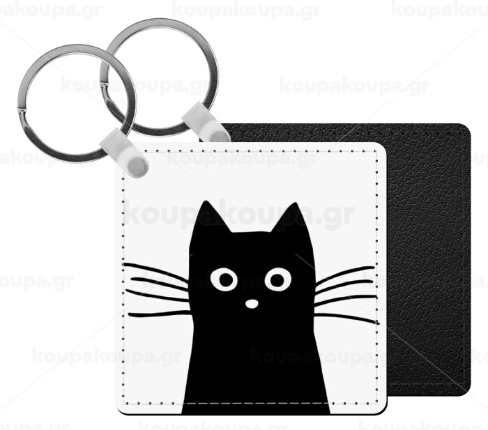 Μαύρη γάτα, Μπρελόκ Δερματίνη, τετράγωνο ΜΑΥΡΟ (5x5cm)