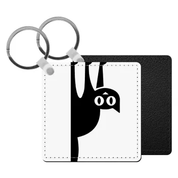 Cat upside down, Μπρελόκ Δερματίνη, τετράγωνο ΜΑΥΡΟ (5x5cm)