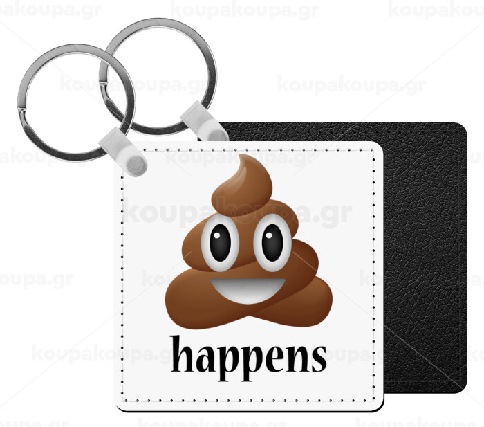 Shit Happens, Μπρελόκ Δερματίνη, τετράγωνο ΜΑΥΡΟ (5x5cm)