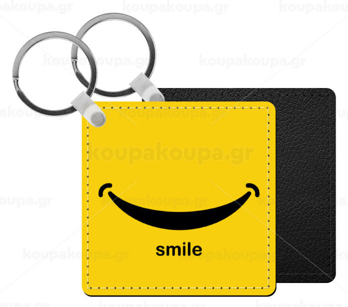 Smile!!!, Μπρελόκ Δερματίνη, τετράγωνο ΜΑΥΡΟ (5x5cm)