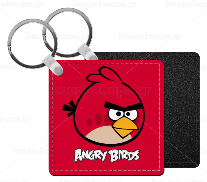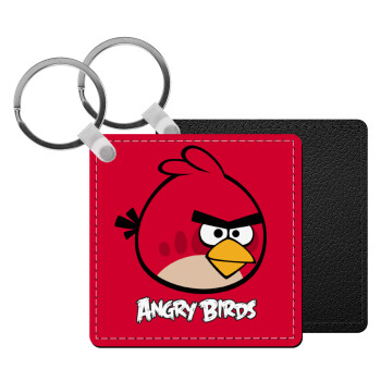 Angry birds Terence, Μπρελόκ Δερματίνη, τετράγωνο ΜΑΥΡΟ (5x5cm)