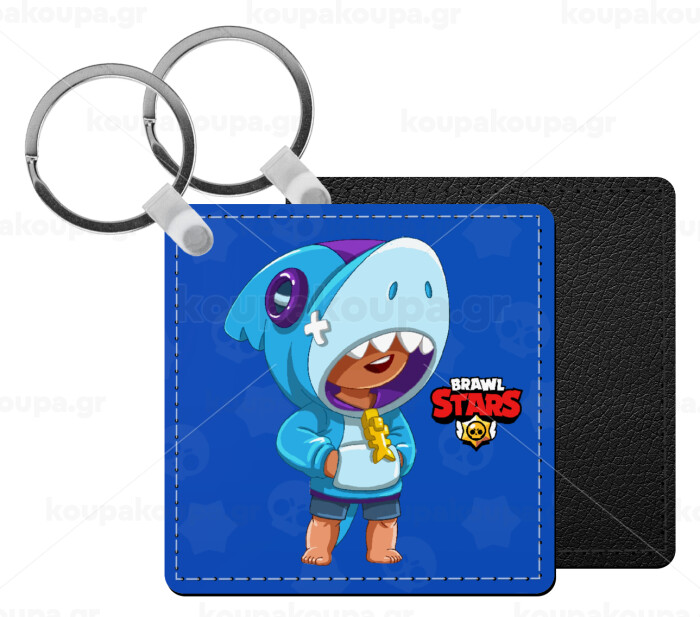 Brawl Stars Leon Shark, Μπρελόκ Ξύλινο τετράγωνο MDF