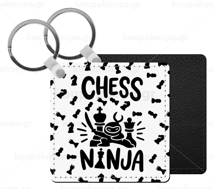 Chess ninja, Μπρελόκ Δερματίνη, τετράγωνο ΜΑΥΡΟ (5x5cm)