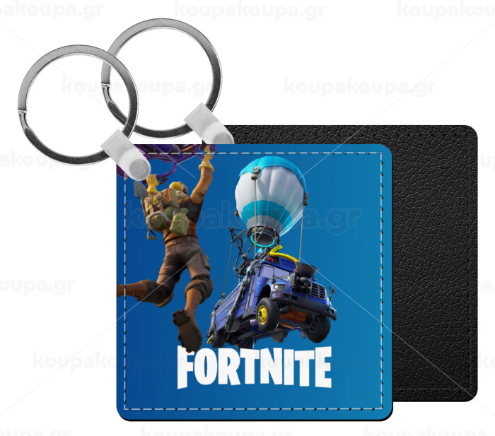 Fortnite Bus, Μπρελόκ Δερματίνη, τετράγωνο ΜΑΥΡΟ (5x5cm)