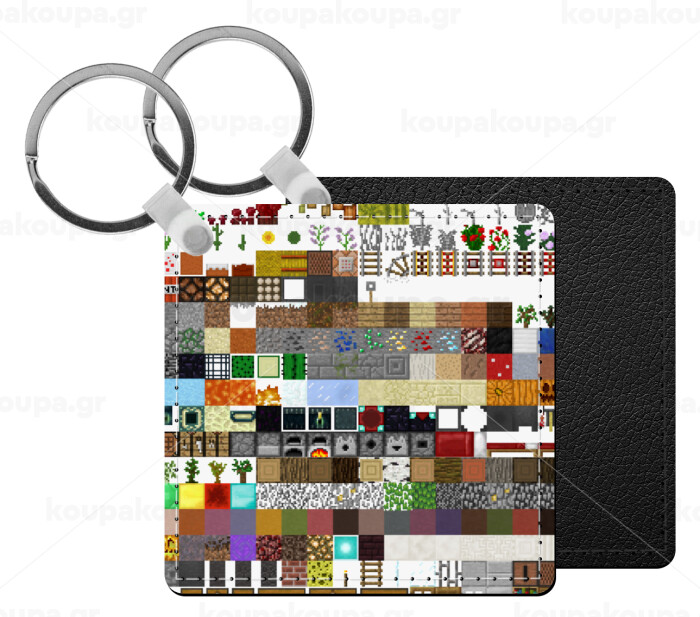 Minecraft blocks, Μπρελόκ Δερματίνη, τετράγωνο ΜΑΥΡΟ (5x5cm)