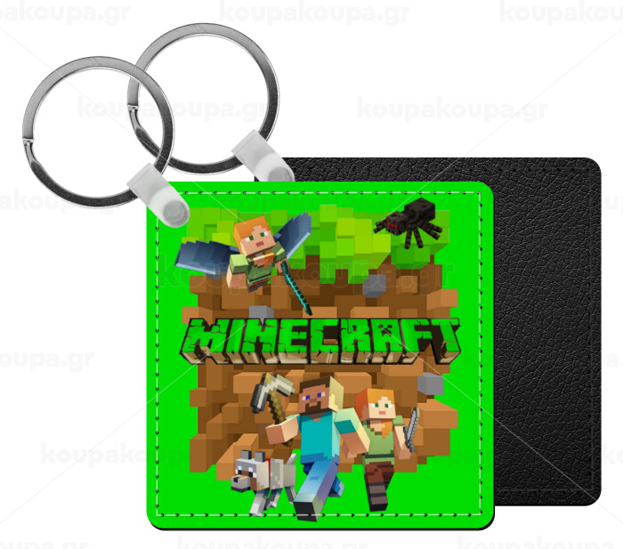 Minecraft characters, Μπρελόκ Δερματίνη, τετράγωνο ΜΑΥΡΟ (5x5cm)