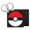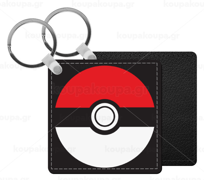 Pokemon ball, Μπρελόκ Δερματίνη, τετράγωνο ΜΑΥΡΟ (5x5cm)
