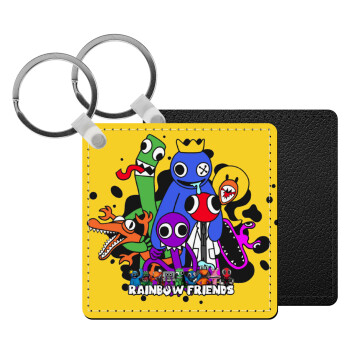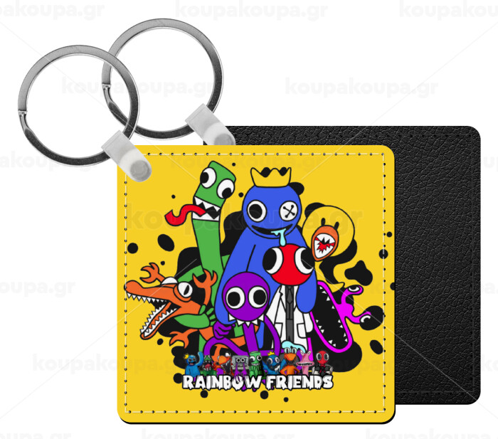 Rainbow friends, Μπρελόκ Δερματίνη, τετράγωνο ΜΑΥΡΟ (5x5cm)