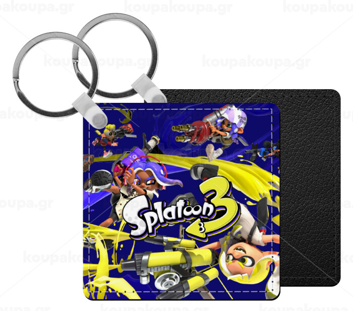 Splatoon 3, Μπρελόκ Δερματίνη, τετράγωνο ΜΑΥΡΟ (5x5cm)