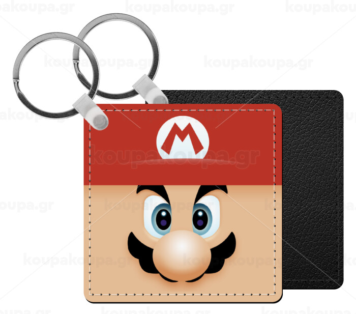 Super mario flat, Μπρελόκ Δερματίνη, τετράγωνο ΜΑΥΡΟ (5x5cm)