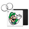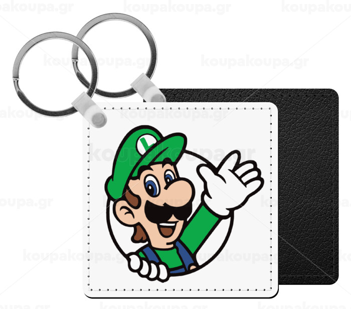 Super mario Luigi win, Μπρελόκ Δερματίνη, τετράγωνο ΜΑΥΡΟ (5x5cm)