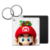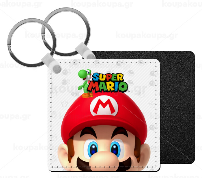 Super mario, Μπρελόκ Δερματίνη, τετράγωνο ΜΑΥΡΟ (5x5cm)