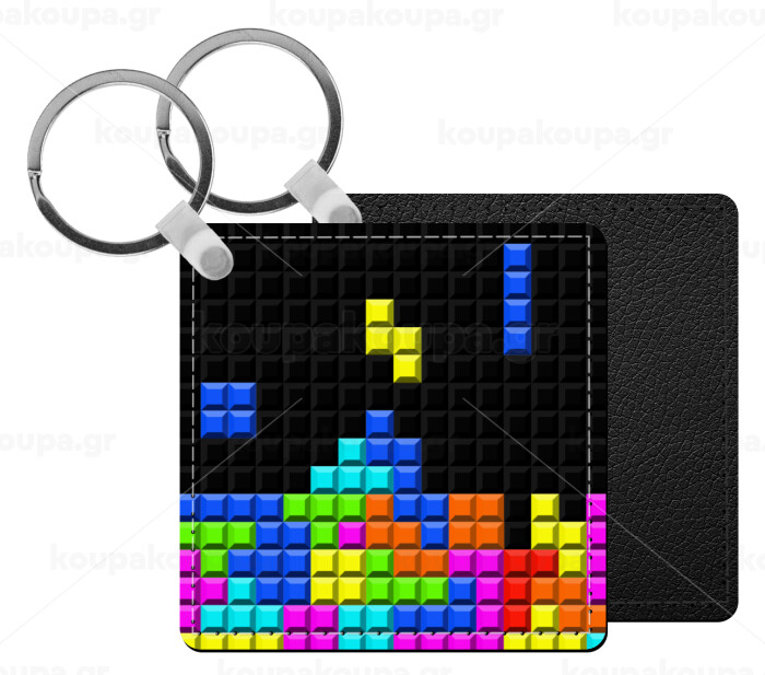 Tetris blocks, Μπρελόκ Δερματίνη, τετράγωνο ΜΑΥΡΟ (5x5cm)