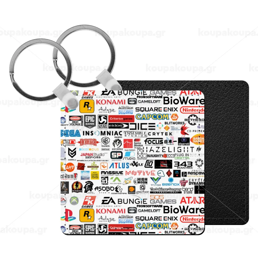 Video Game Studio Logos, Μπρελόκ Δερματίνη, τετράγωνο ΜΑΥΡΟ (5x5cm)