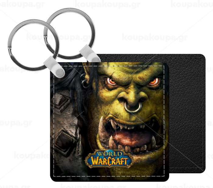 Worl of Warcraft, Μπρελόκ Δερματίνη, τετράγωνο ΜΑΥΡΟ (5x5cm)