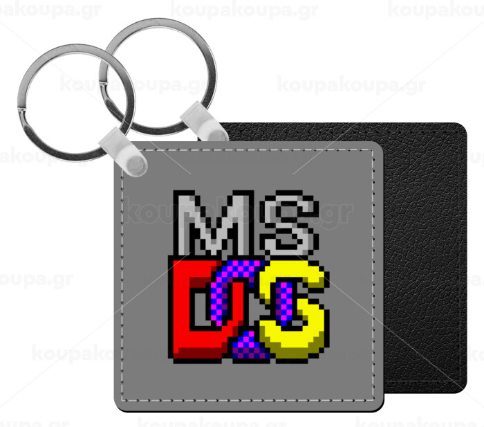 MsDos, Μπρελόκ Δερματίνη, τετράγωνο ΜΑΥΡΟ (5x5cm)