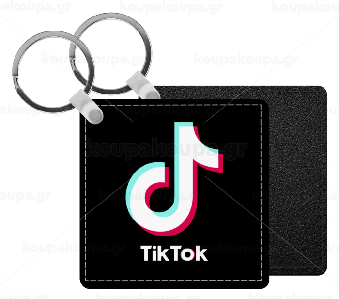 TikTok, Μπρελόκ Δερματίνη, τετράγωνο ΜΑΥΡΟ (5x5cm)