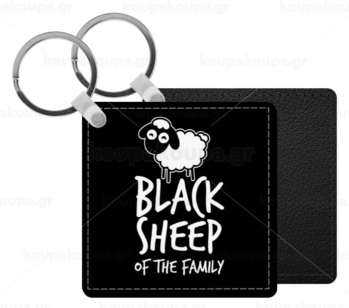 Black Sheep of the Family, Μπρελόκ Δερματίνη, τετράγωνο ΜΑΥΡΟ (5x5cm)
