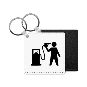 Fuel crisis, Μπρελόκ Δερματίνη, τετράγωνο ΜΑΥΡΟ (5x5cm)