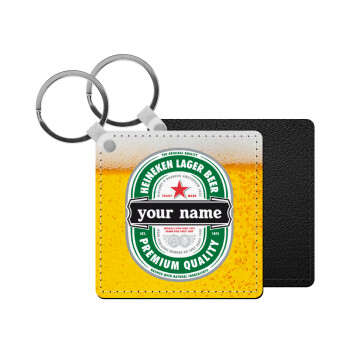 Heineken με όνομα, Μπρελόκ Δερματίνη, τετράγωνο ΜΑΥΡΟ (5x5cm)