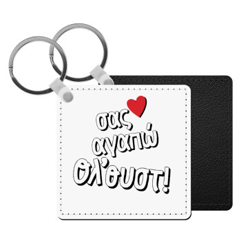 Σας αγαπώ όλ'ουστ!, Μπρελόκ Δερματίνη, τετράγωνο ΜΑΥΡΟ (5x5cm)