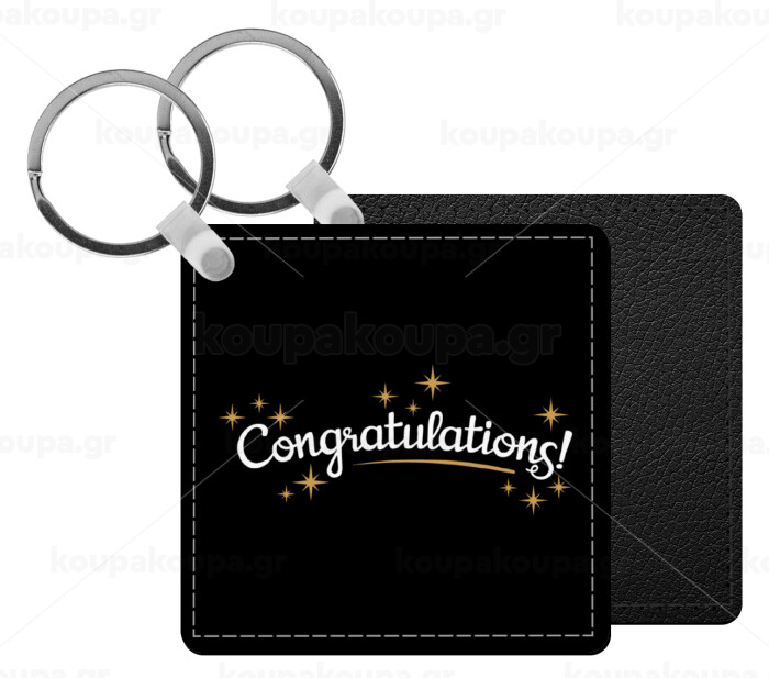 Congratulations, Μπρελόκ Δερματίνη, τετράγωνο ΜΑΥΡΟ (5x5cm)