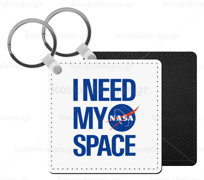 I need my space, Μπρελόκ Δερματίνη, τετράγωνο ΜΑΥΡΟ (5x5cm)