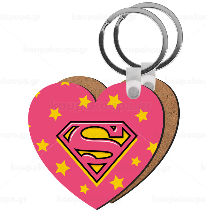 Superman Pink, Μπρελόκ Ξύλινο καρδιά MDF