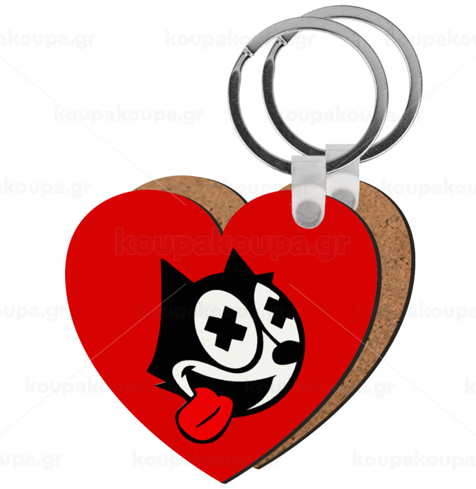 helix the cat, Μπρελόκ Ξύλινο καρδιά MDF