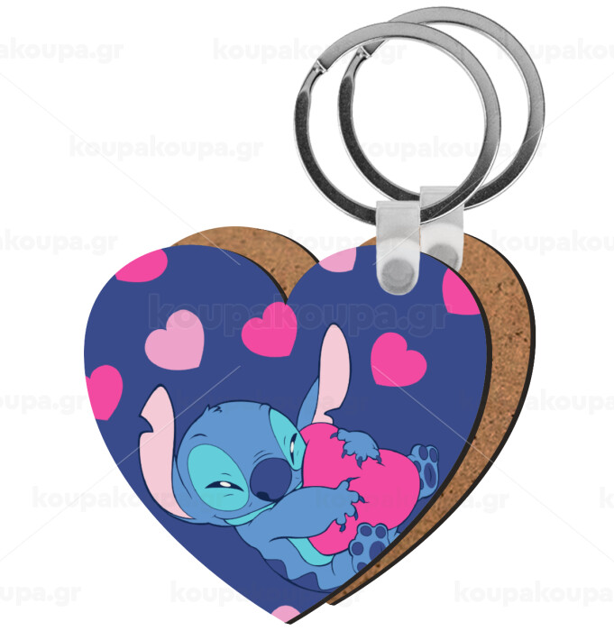 Lilo & Stitch hugs and hearts, Μπρελόκ Ξύλινο καρδιά MDF
