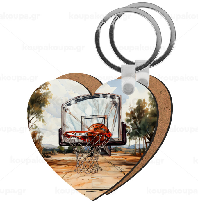Basketball, Μπρελόκ Ξύλινο καρδιά MDF