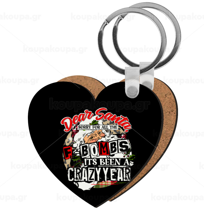 Dear Santa, sorry for all the F-bombs, Μπρελόκ Ξύλινο καρδιά MDF