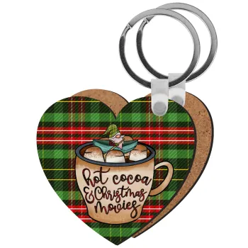 Hot Cocoa And Christmas Movies, Μπρελόκ Ξύλινο καρδιά MDF