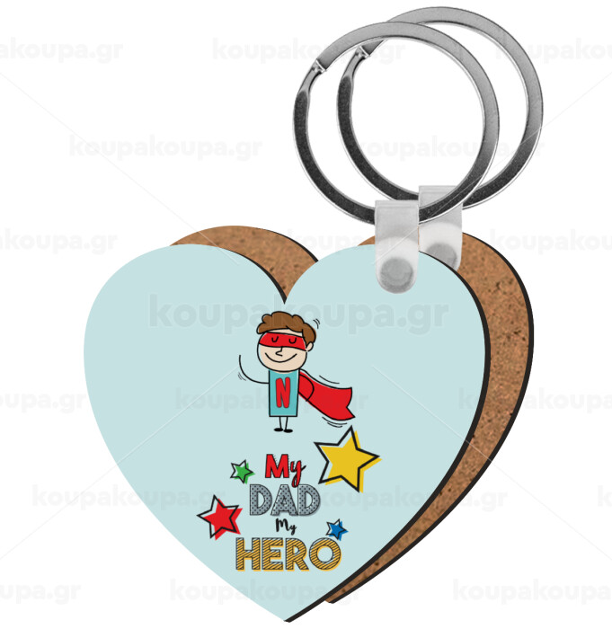 My Dad, my Hero!!!, Μπρελόκ Ξύλινο καρδιά MDF