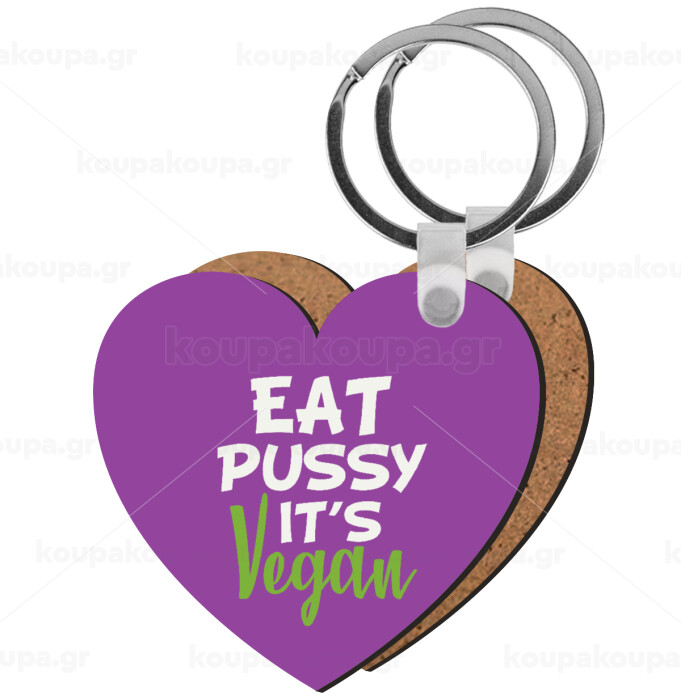 EAT pussy it's vegan, Μπρελόκ Ξύλινο καρδιά MDF