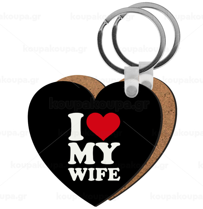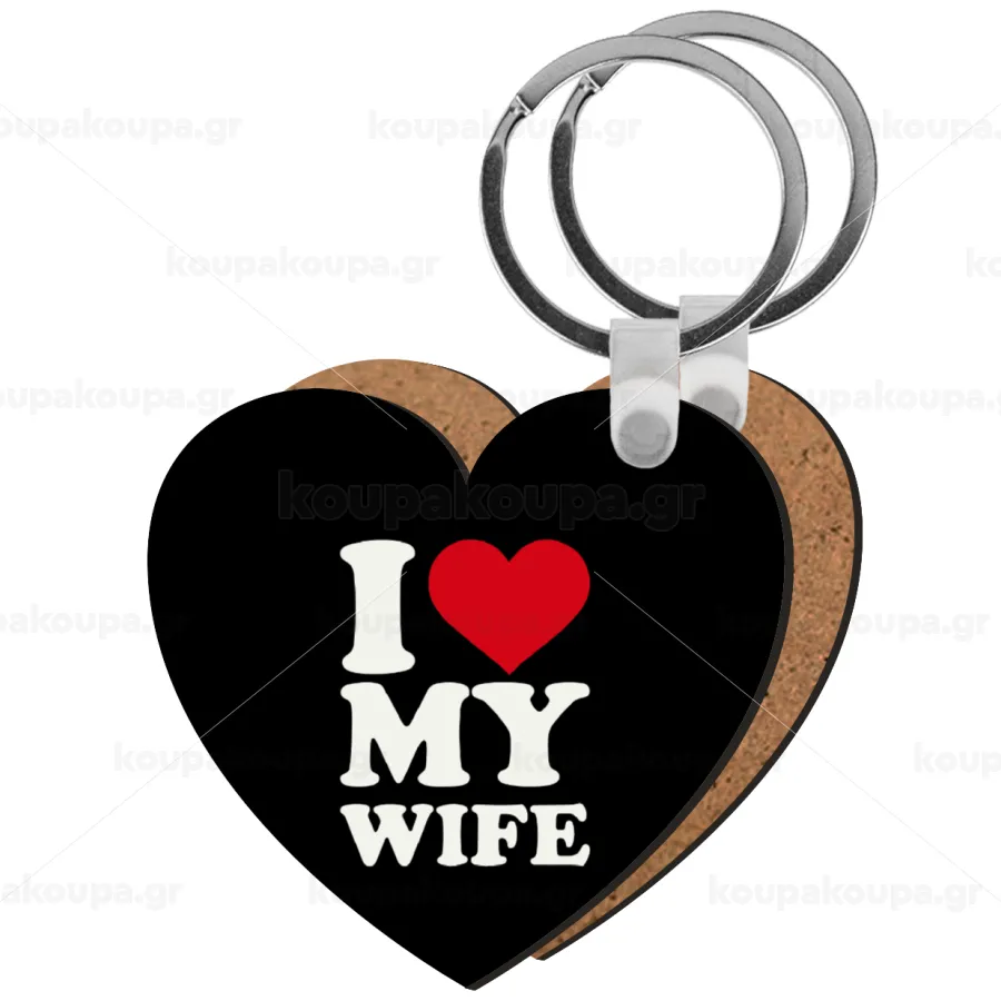 I Love my Wife, Μπρελόκ Ξύλινο καρδιά MDF