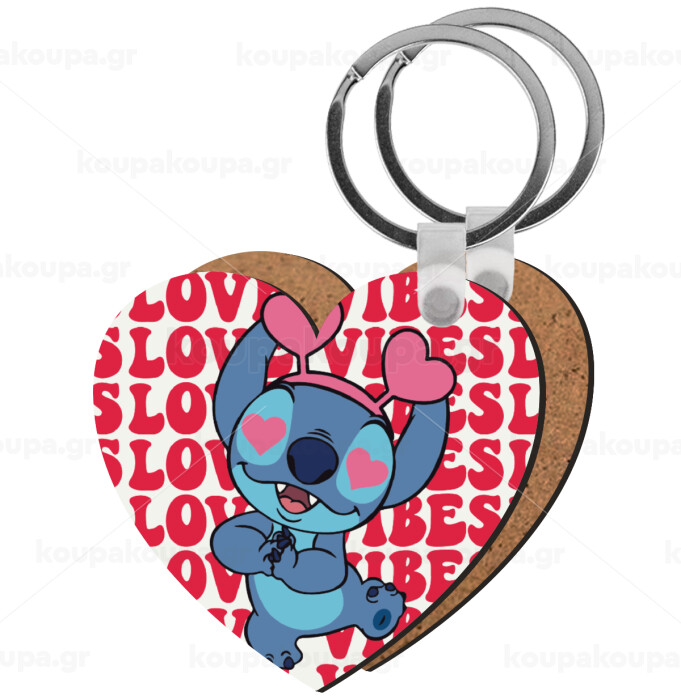 Lilo & Stitch Love vibes, Μπρελόκ Ξύλινο καρδιά MDF