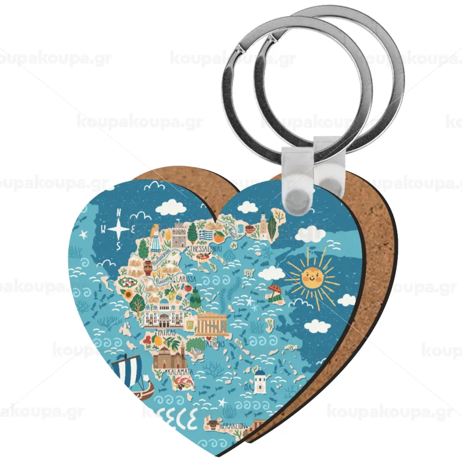 Χάρτης Ελλάδος, Μπρελόκ Ξύλινο καρδιά MDF