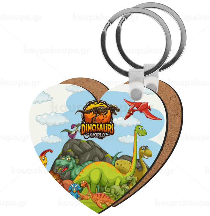 Dinosaur's world, Μπρελόκ Ξύλινο καρδιά MDF