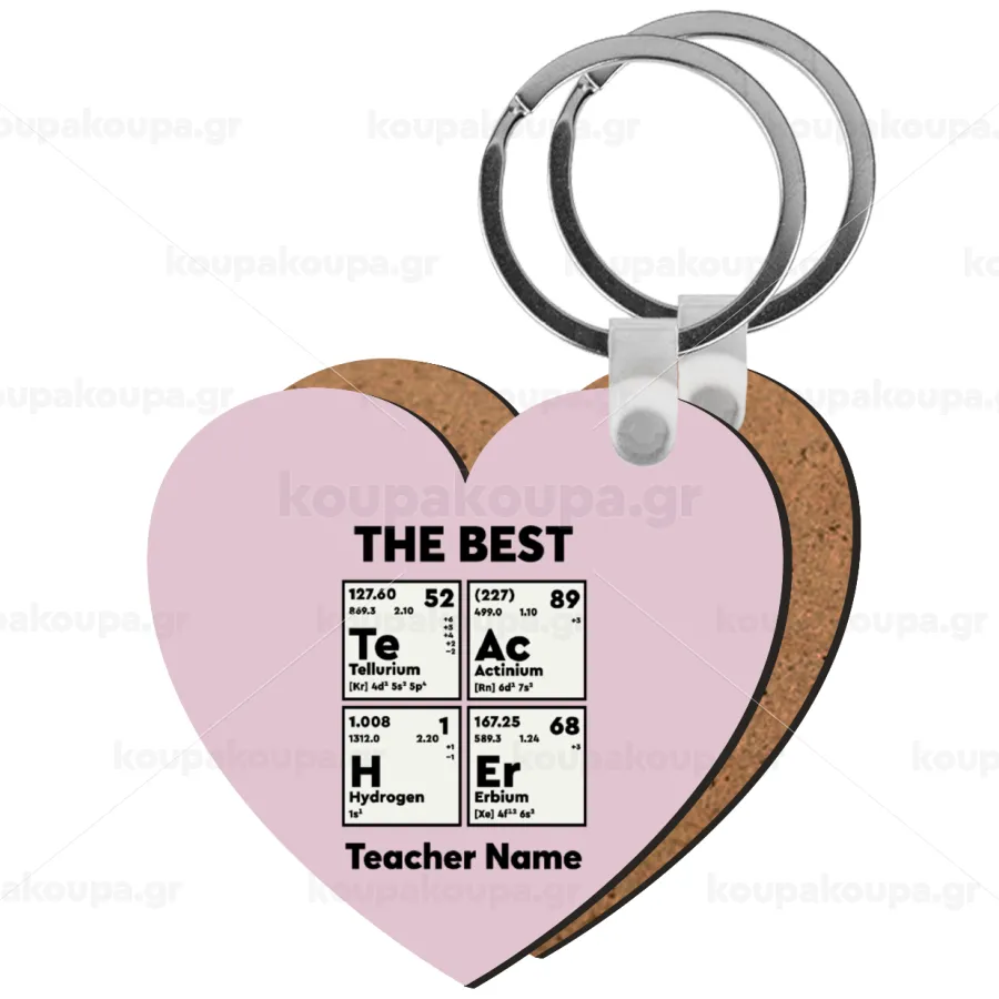 THE BEST Teacher chemical symbols, Μπρελόκ Ξύλινο καρδιά MDF
