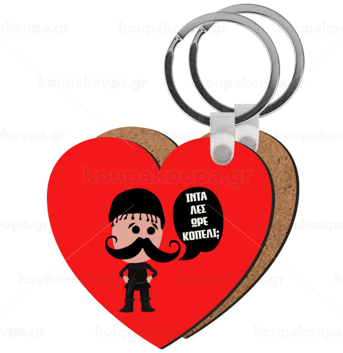 Κρητικός "Ίντα λες ωρέ κοπέλι", Μπρελόκ Ξύλινο καρδιά MDF