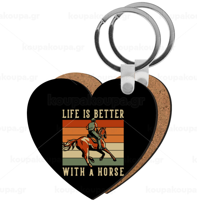 Life is Better with a Horse, Μπρελόκ Ξύλινο καρδιά MDF