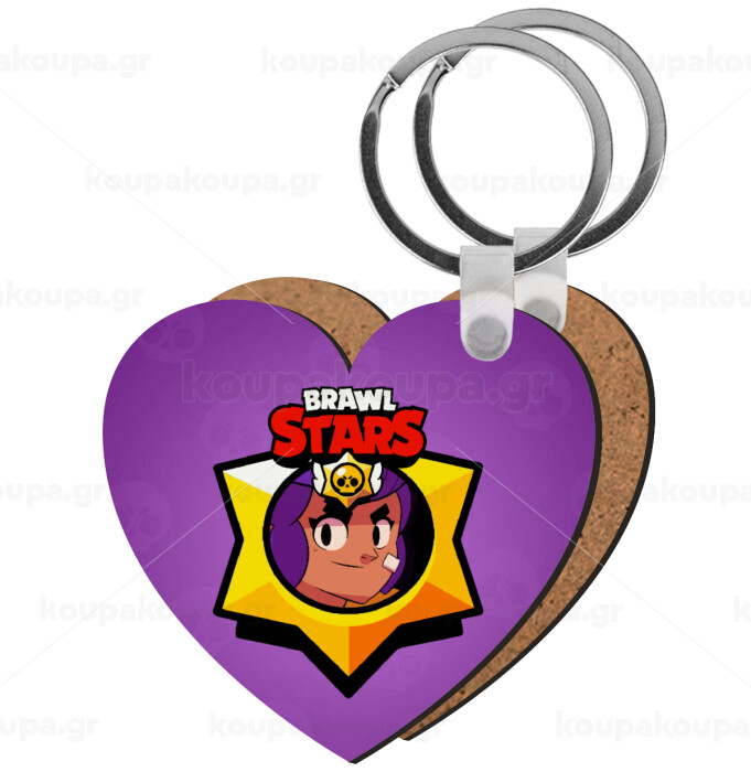 Brawl Stars Shelly, Μπρελόκ Ξύλινο καρδιά MDF