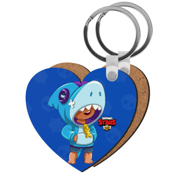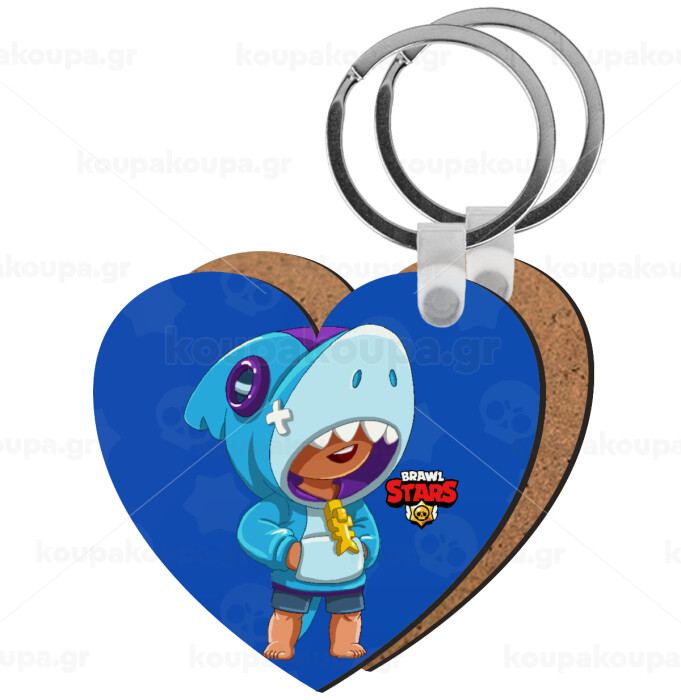 Brawl Stars Leon Shark, Μπρελόκ Ξύλινο καρδιά MDF