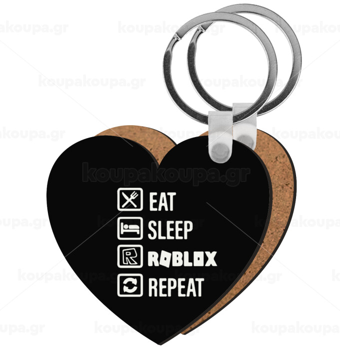 Eat, Sleep, Roblox, Repeat, Μπρελόκ Ξύλινο καρδιά MDF