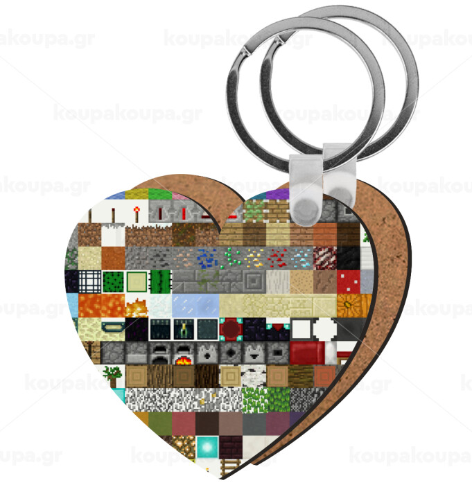 Minecraft blocks, Μπρελόκ Ξύλινο καρδιά MDF