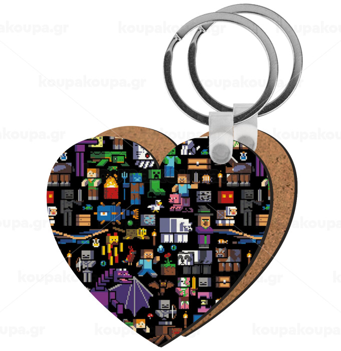 Minecraft Characters, Μπρελόκ Ξύλινο καρδιά MDF