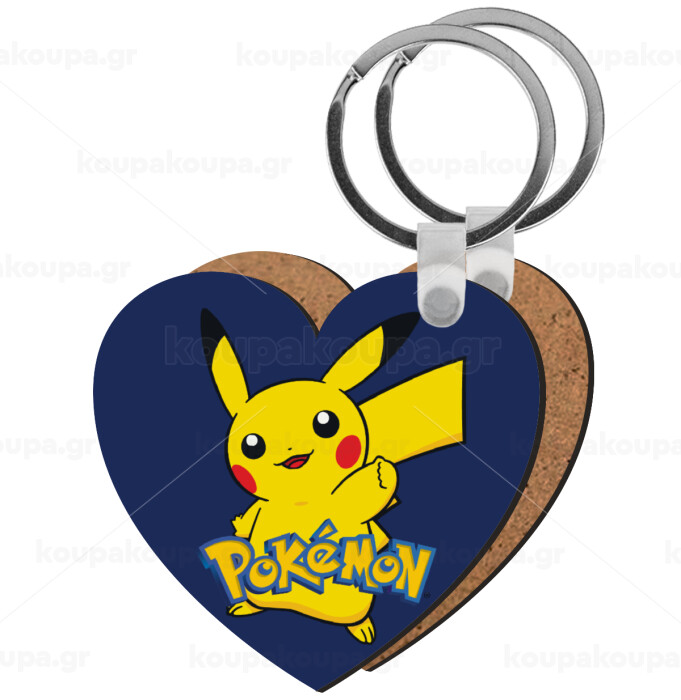 Pokemon pikachu, Μπρελόκ Ξύλινο καρδιά MDF