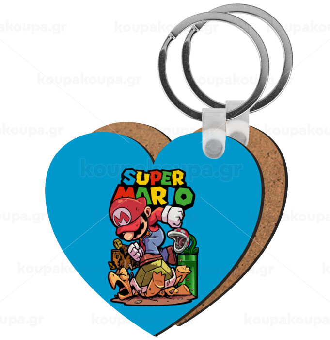 Super mario Jump, Μπρελόκ Ξύλινο καρδιά MDF