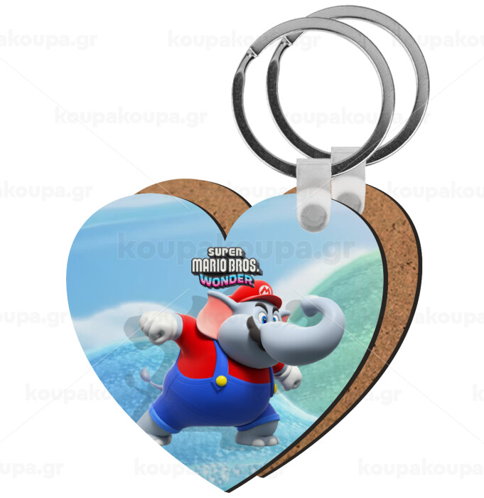 Super mario wonder, Μπρελόκ Ξύλινο καρδιά MDF